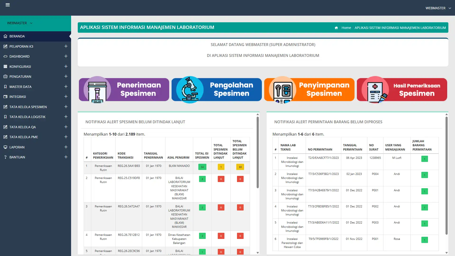 Laboratory Information Management System (LIMS) adalah solusi digital mutakhir yang dirancang untuk mengoptimalkan alur kerja laboratorium secara end-to-end. Platform ini bertujuan untuk mengotomatisasi seluruh siklus hidup pengujian, mulai dari registrasi dan pelacakan sampel, proses analisis laboratorium yang ketat, hingga pelaporan secara otomatis. Dengan mengintegrasikan teknologi manajemen basis data yang aman, LIMS menghilangkan proses pencatatan manual yang berisiko tinggi terhadap kesalahan, sehingga menjamin integritas data dan kepatuhan terhadap standar akreditasi laboratorium internasional.
