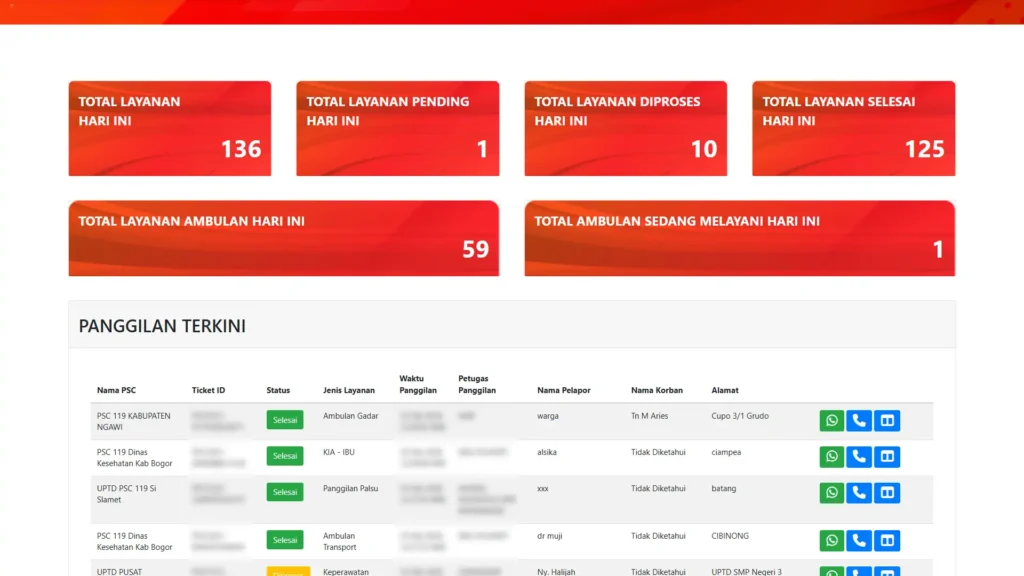 PSC 119 merupakan sistem integrasi layanan kegawatdaruratan medis yang dirancang sebagai garda terdepan dalam menyelamatkan nyawa masyarakat. Project ini fokus pada pembangunan infrastruktur komunikasi dan koordinasi yang menghubungkan laporan darurat dari masyarakat secara langsung dengan pusat komando, armada ambulans, dan fasilitas pelayanan kesehatan (fasyankes). Dengan mengedepankan prinsip time-saving is life-saving, platform ini memastikan bahwa setiap panggilan darurat mendapatkan respon medis yang tepat dalam waktu sesingkat mungkin. Sistem ini mengintegrasikan teknologi pelacakan lokasi dan manajemen armada untuk memobilisasi petugas terdekat menuju lokasi kejadian dengan akurasi tinggi.